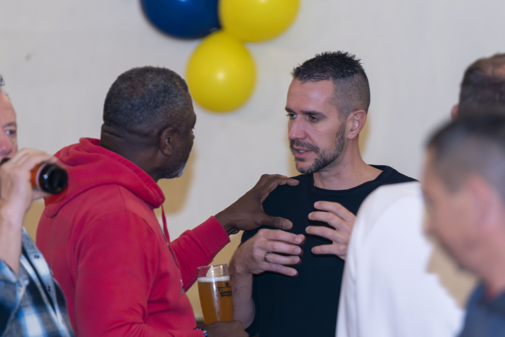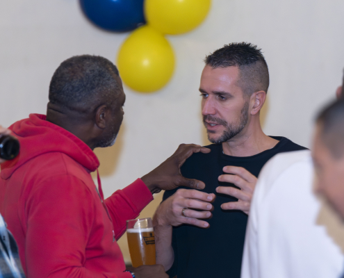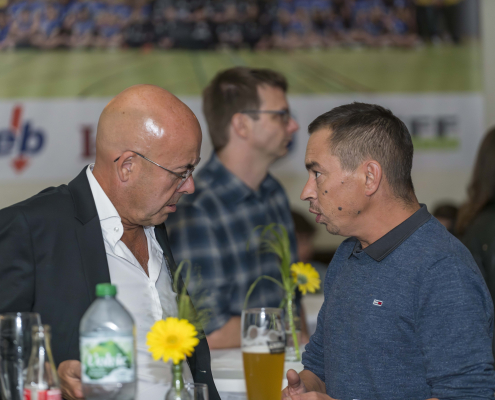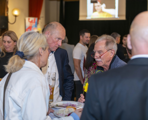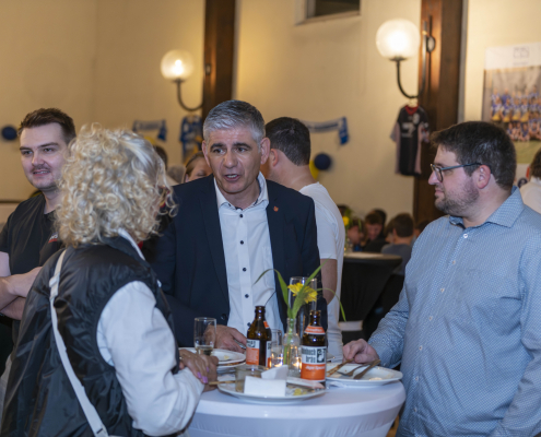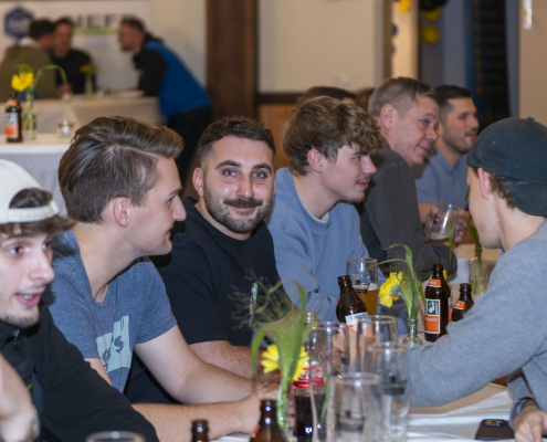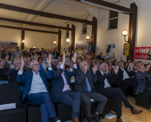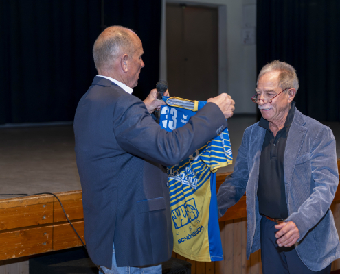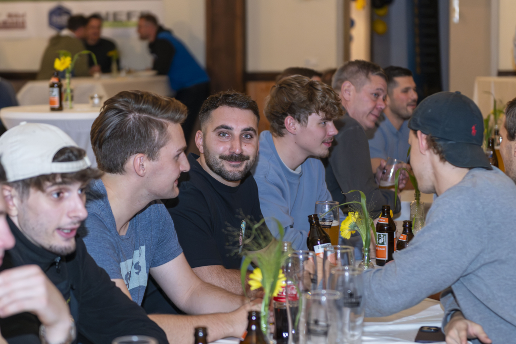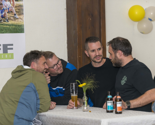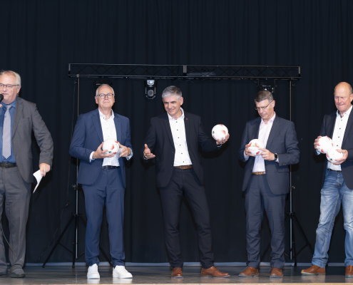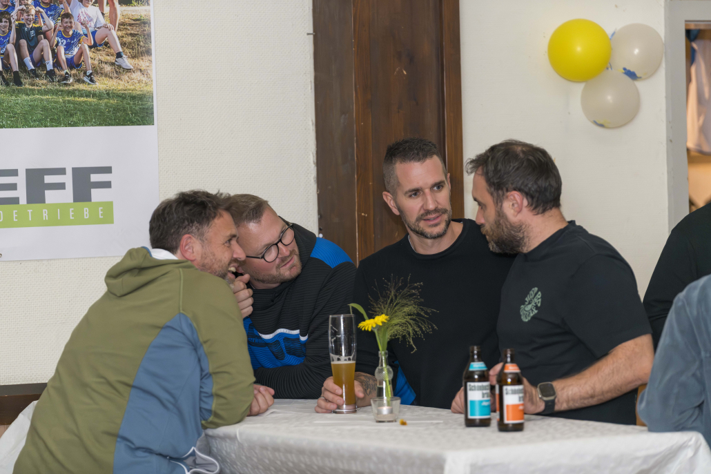 Dort präsentierten sich Trikots aus allen Spielzeiten, begleitet von einer fortlaufenden Diashow mit Momenten und Gesichtern aus einem Vierteljahrhundert Vereinsgeschichte. „35 Trainer im Aktivenbereich, 49 Sponsoren, 766 bewirtschaftete Spieltage und rund 40 000 Stunden im Jugendtraining und Spielbetrieb“, zählte Vorstand Wolfgang Koring beeindruckende Zahlen auf. Viele, die zu dieser Geschichte beigetragen haben, waren gekommen: Ehrenamtliche, Schiedsrichter, Spieler sowie Coaches– sie alle feierten gemeinsam diese Reise in die Vergangenheit.