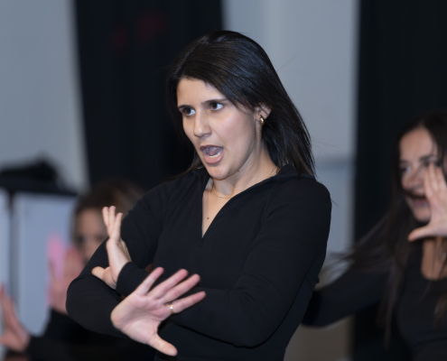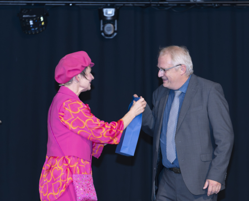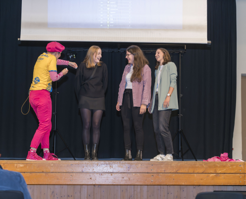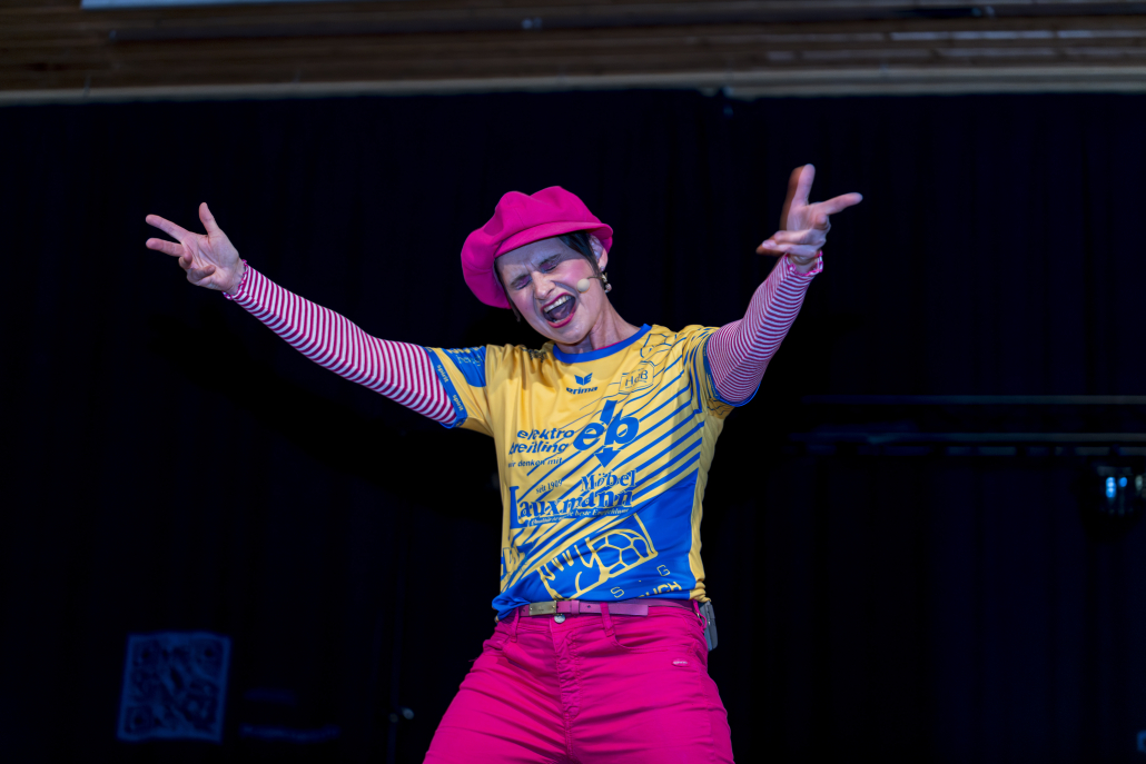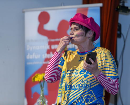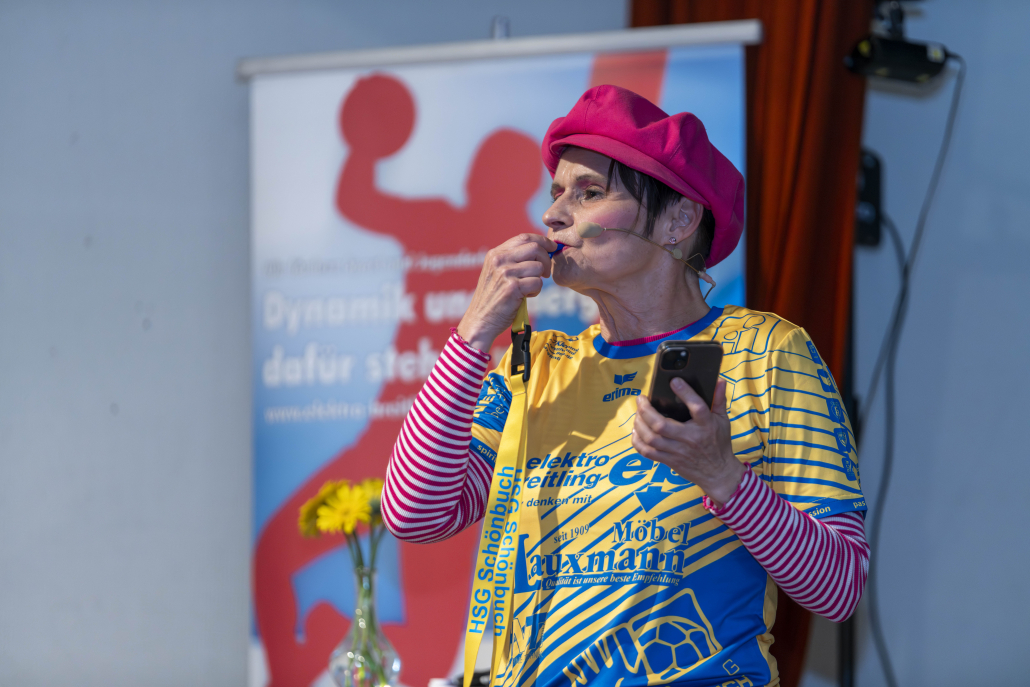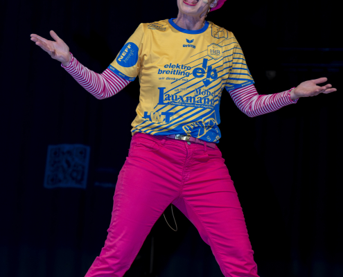 Durch das Programm führte Kabarettistin Marlies Blume – charmant, schlagfertig und in leuchtendem Pink. „Um dem Ganzen einen pinken Faden zu verpassen“, scherzte sie bei ihrer Begrüßung. Für stimmungsvolle Auflockerung sorgten zwei Auftritte der „Siesta Dancers“ aus Leonberg. „Wir hatten großen Spaß, hier tanzen zu dürfen – den ersten Song haben wir extra in nur vier Wochen einstudiert“, erzählte Klara, die gemeinsam mit ihrer Gruppe im März bei der „Hip Hop International Germany“ antreten möchte. Die „Siesta Dancers“ sind Teil der Jugendsozialarbeit Leonberg der Waldhaus Jugendhilfe, die traditionell eng mit der HSG Schönbuch verbunden ist.