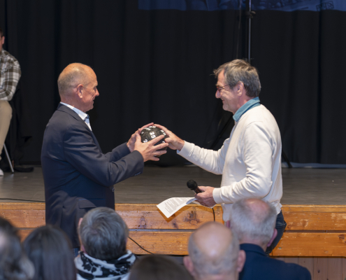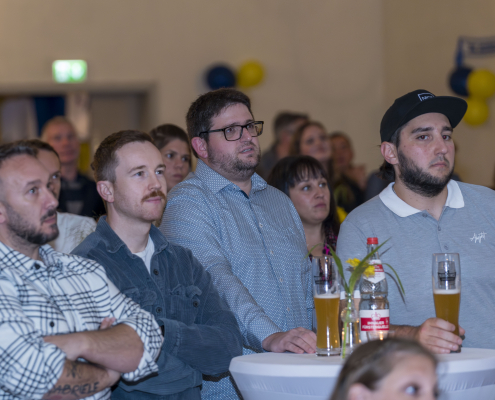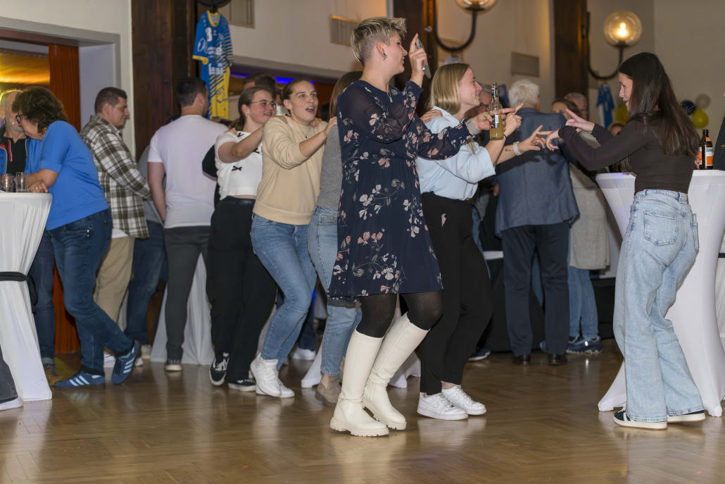 Zum Abschluss überraschte Marlies Blume mit einer eigenen Variante des ACDC-Klassikers „TNT“ – passend umgedichtet auf „HSG“ – und entließ die Gäste in einen lockeren Abend. „Des isch die HSG, Hey Hey, HSG – Hey da geht was!“