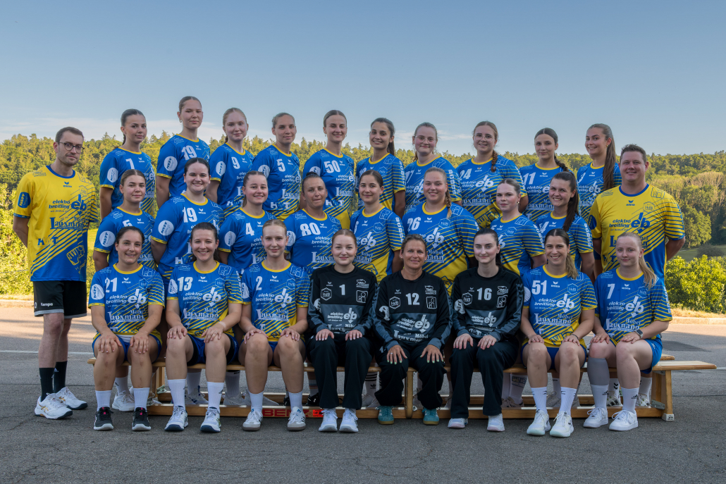 Mittlere Reihe v.l.n.r: Trainer Daniel Haigis, Valeska Ruschitzka, Maja Noller, Hannah Strauß, Nicole Stein, Natalie Schwenk, Vivien Zwarg, Kira Schütz, Laura Christel, Trainer Ralf Schmid.