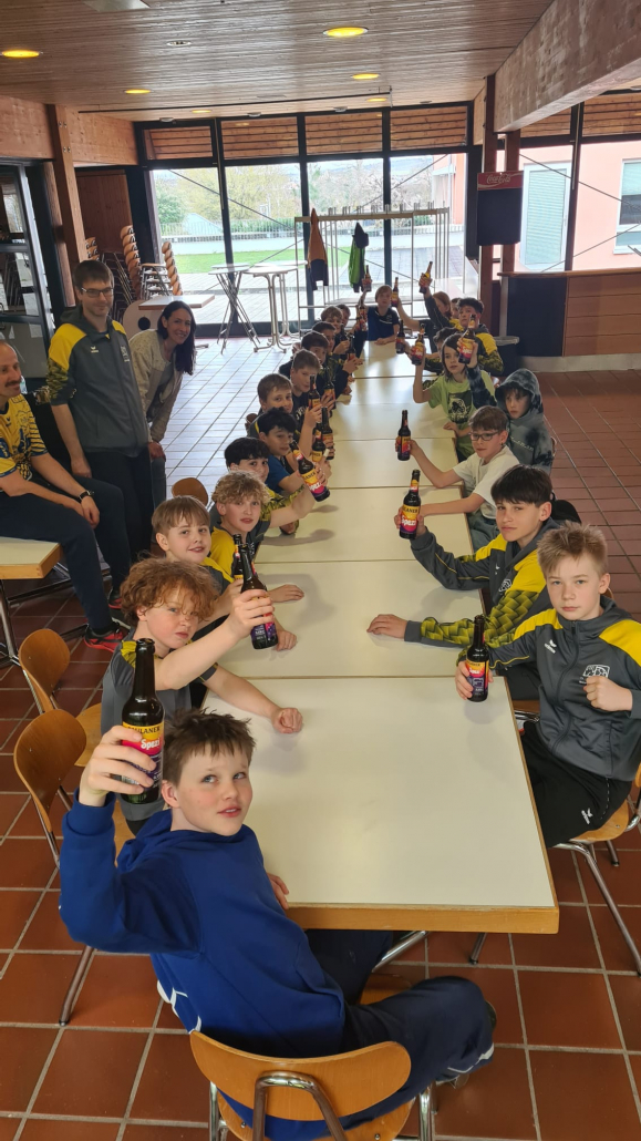 Nach dem letzten Saisonspiel unserer D2 in Aidlingen und der D1 daheim, bei dem beide Mannschaftsfotos entstanden, wurde der Abschluss der Saison daheim in der Schönbuch Sporthalle mit Pizza und Spezi gefeiert.